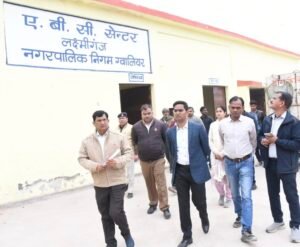 एबीसी सेंटर लक्ष्मीगंज के निरीक्षण के दौरान निगमायुक्त और निगम अफसर