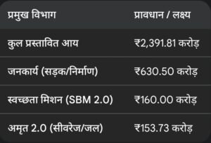 - ₹160 करोड़ स्वच्छता बजट : ग्वालियर को कचरा मुक्त बनाने और फाइव स्टार रेटिंग दिलाने के लिए ₹160 करोड़ खर्च होंगे।