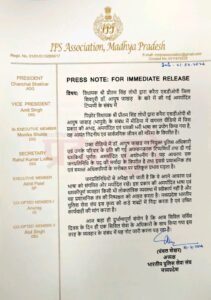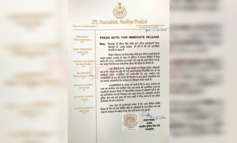 विधायक की अभद्र टिप्पणी पर IPS एसोसिएशन ने प्रेस रिलीज जारी कर जताया विरोध